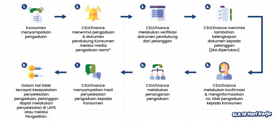 - Customers or representatives who have the authority to submit complaints to CSULfinance via official CSULfinance complaint media such as: email customer.care@csul.co.id, Customer Care 021-4000-0650, CSULfinance Offical WhatsApp 0812-4000-6650 or Branch Offices.